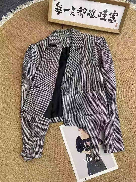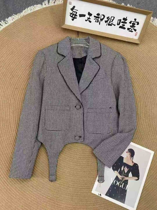 千鸟格西装外套68件29.9,不规则设计,有内衬,有口袋...