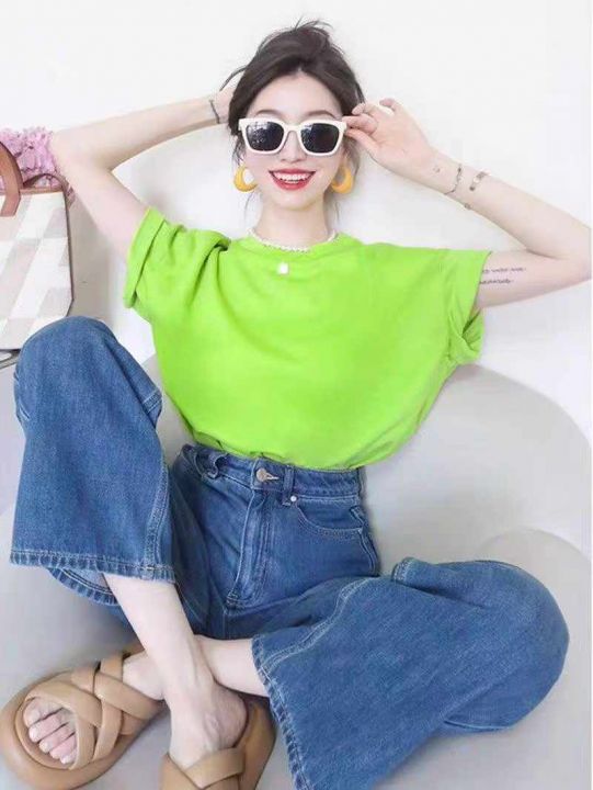 4.5清电商回收775件慵懒纯色净版纯棉正肩短袖T恤,码...