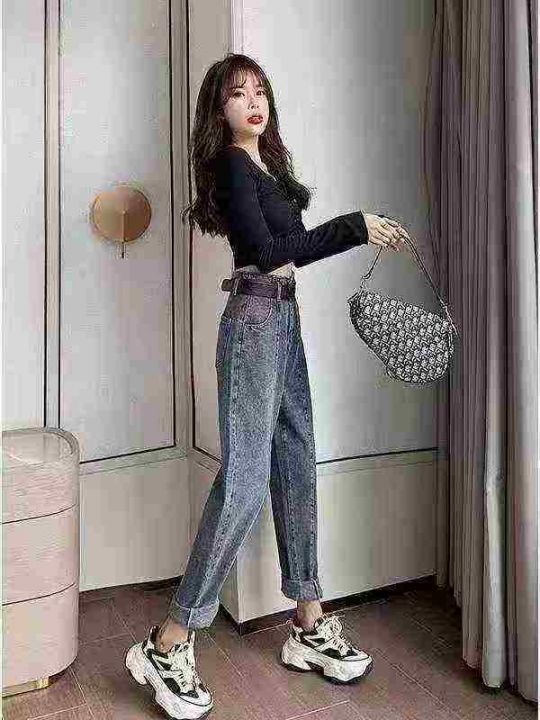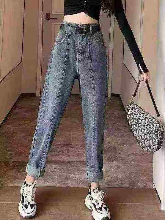 显瘦大码哈伦牛仔裤春秋装宽松新款高腰萝卜老爹女士裤120件,独立包装带吊牌,尺码S~5XL,全清福利价9.8元