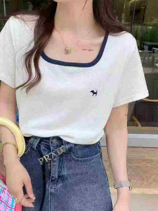 腾仓库捡漏:5.8一件品牌纯棉撞色刺绣圆领修身显瘦短...