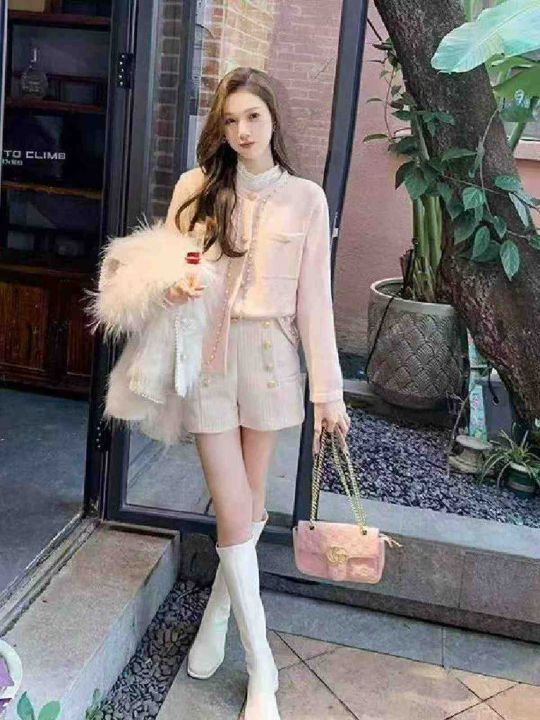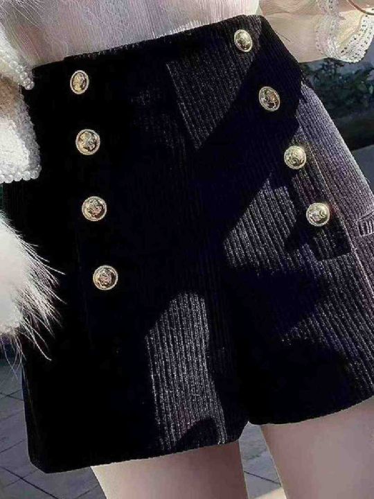 秋冬新款韩版时尚百搭双排扣高腰金丝绒阔腿短裤,独立...