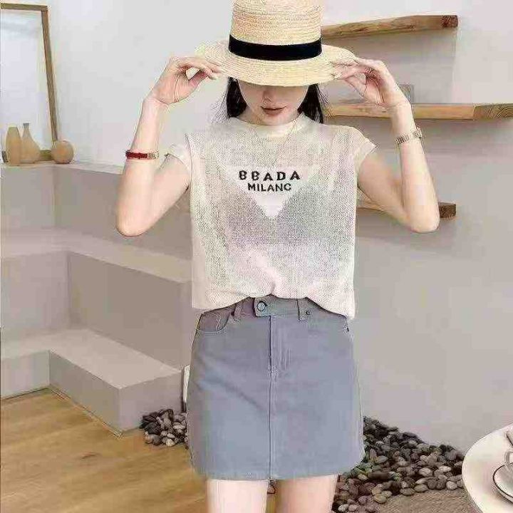 夏季新款韩系镂空设计款提花针织短袖T桖,独立包装,...