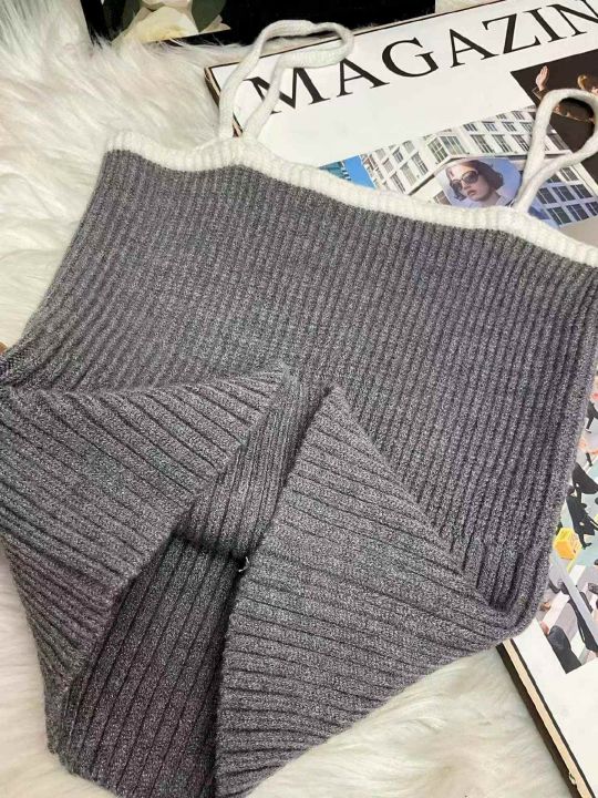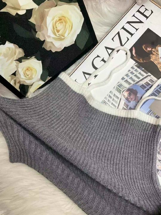 夏季新款净版简约纯欲风性感灰色弹力修身显瘦针织背心...