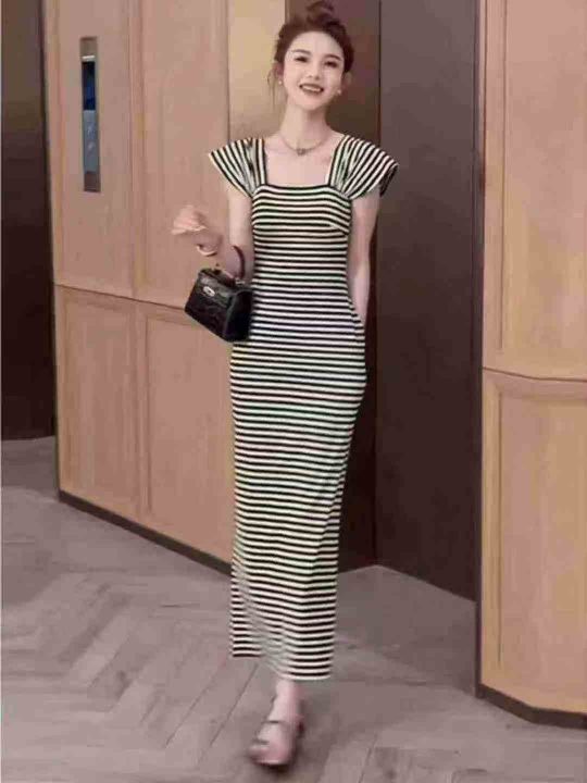 全清7.8元天猫在售款500件左右高品质夏季小个子撞色条纹方领短袖连衣裙,码...