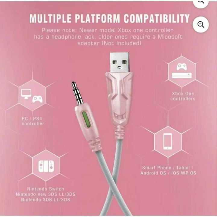 RUNMUS K2 粉色游戏耳机 7.1环绕声道,降噪 头戴式 清...