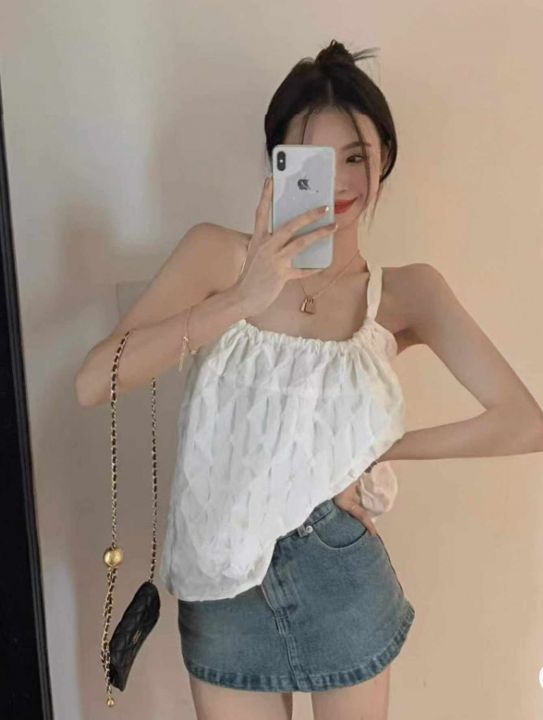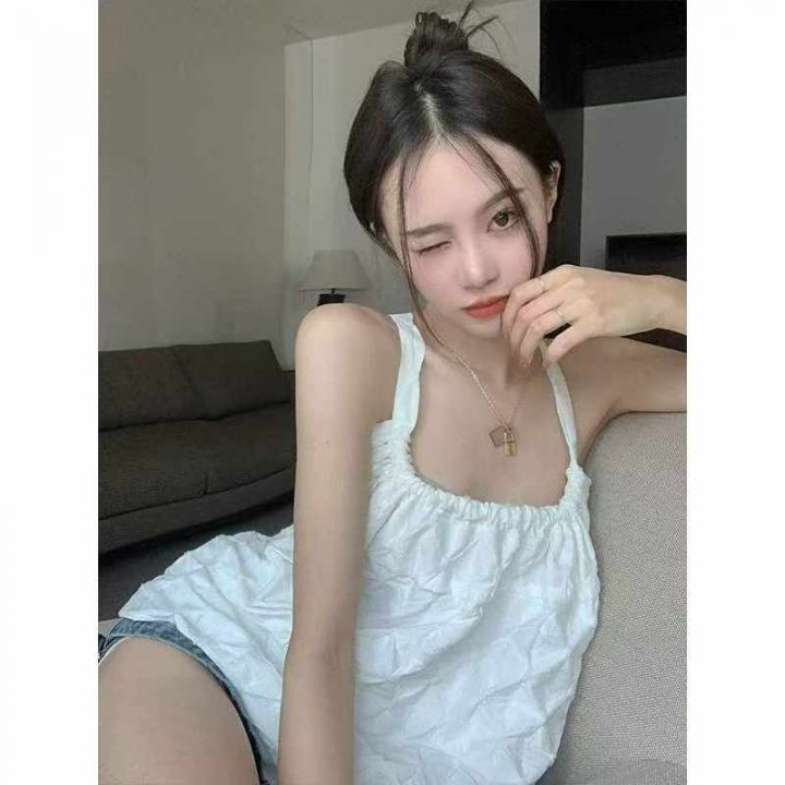 夏季新款法式性感小心机白色交叉吊带背心,独立包装,...