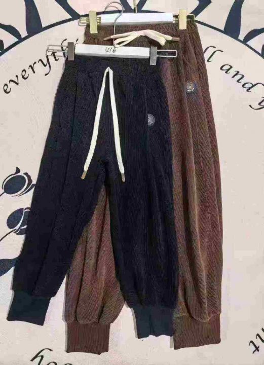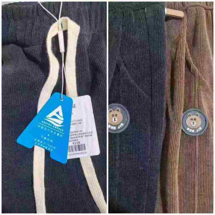 1200件左右品牌中大童装灯芯绒束脚长裤,码数110-160,整款两个色,独立包装带吊牌