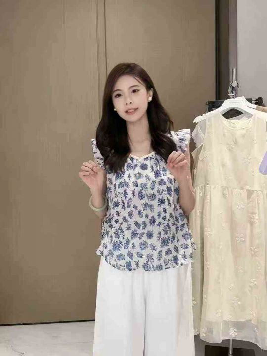 3.8元,女装夏季法式没计感飞飞袖碎花上衣,382件,S-2XL,独立包装,全清3...