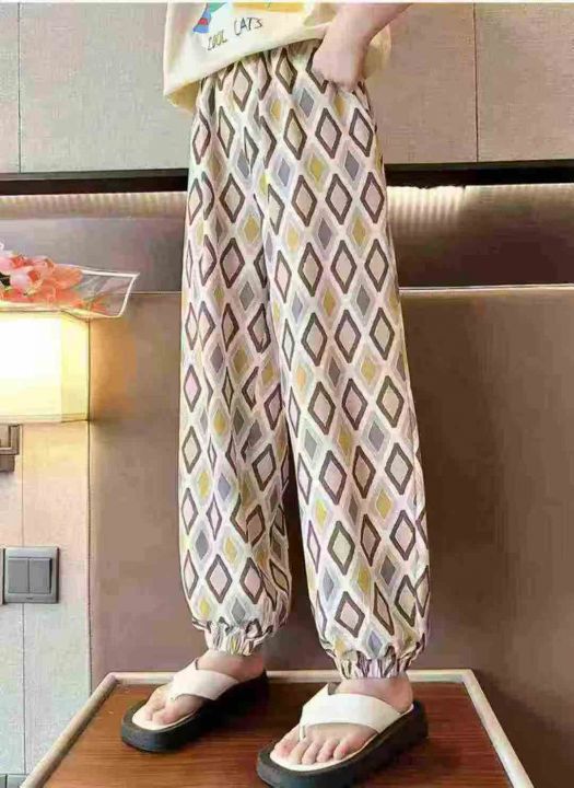中大童时尚印格冰丝裤,面料冰爽丝滑垂感有弹力,98件,2-7码,独立包装吊...
