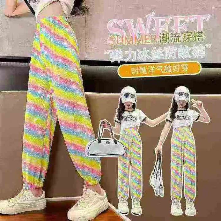 童装冰丝裤,女童夏季速干休闲束脚彩色冰丝裤,松紧腰,192件,2-7码相当于...