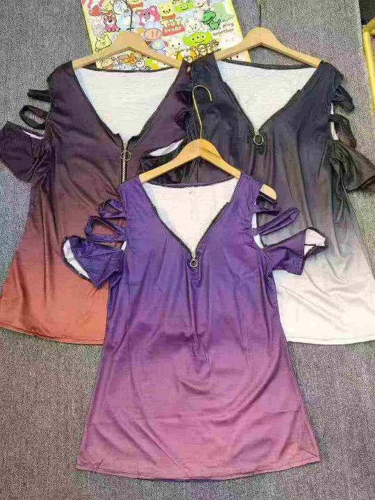 220件半拉链V领露肩仿棉T恤上衣 单款三色,码数S-4XL码 独立包装。
