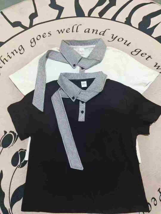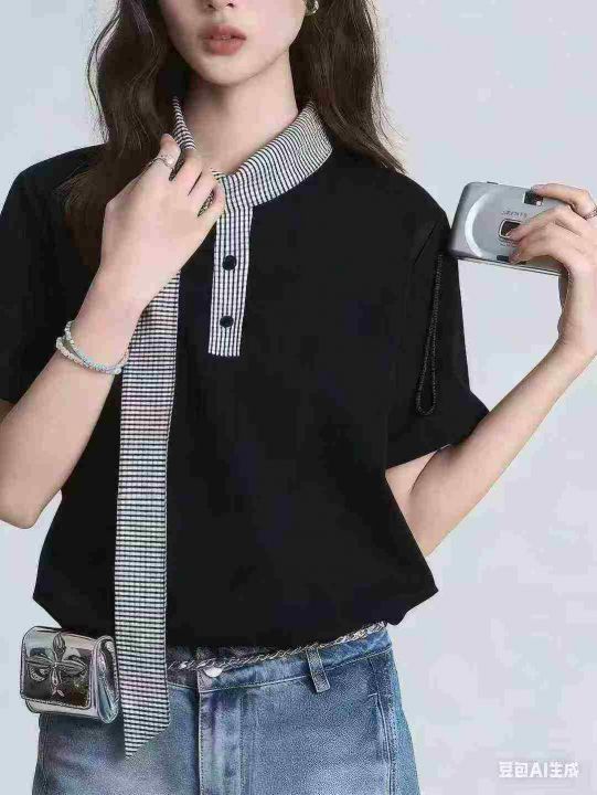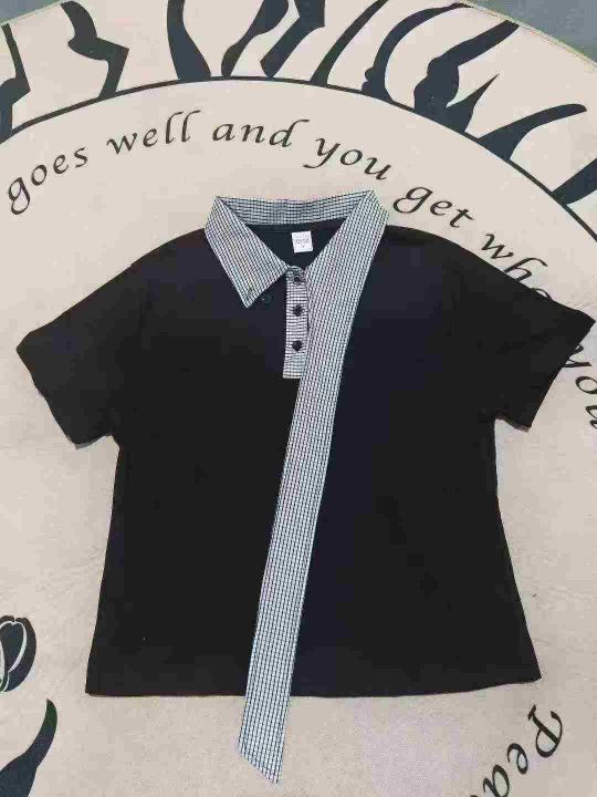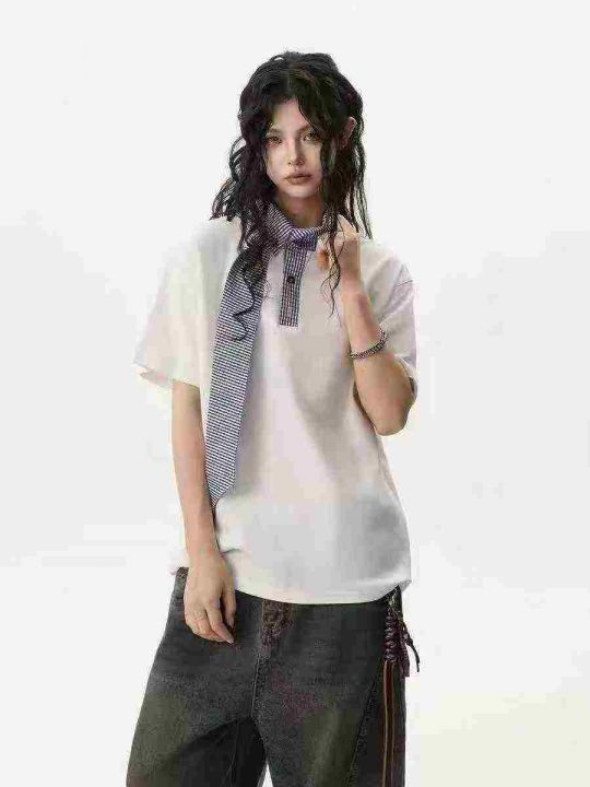 「航海系」迈特优领口拼接短袖男女同款夏季设计感宽松休闲情侣T恤 数量80件左右 尺码S--L 两个颜色 独立包装 货品干净整洁