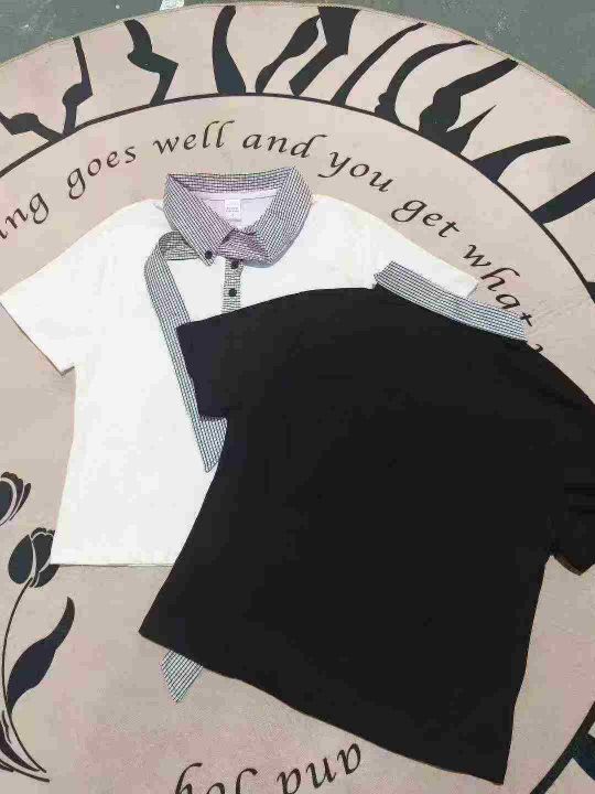 「航海系」迈特优领口拼接短袖男女同款夏季设计感宽松休闲情侣T恤 数量80件左右 尺码S--L 两个颜色 独立包装 货品干净整洁