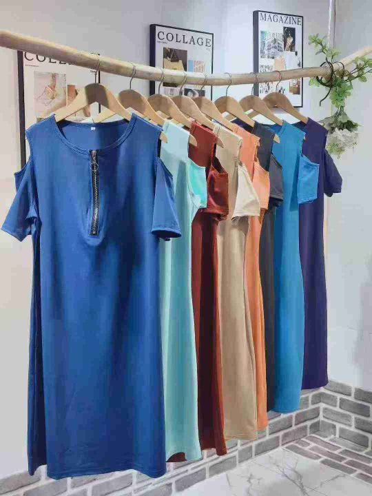B-55-C132,码数S-3XL,数量1090件左右(备注:有少量长袖),单款多色,仿棉面料,有弹力,大码连衣裙,半拉链连衣裙,坎肩连衣裙,全部独立包装,分货➕1