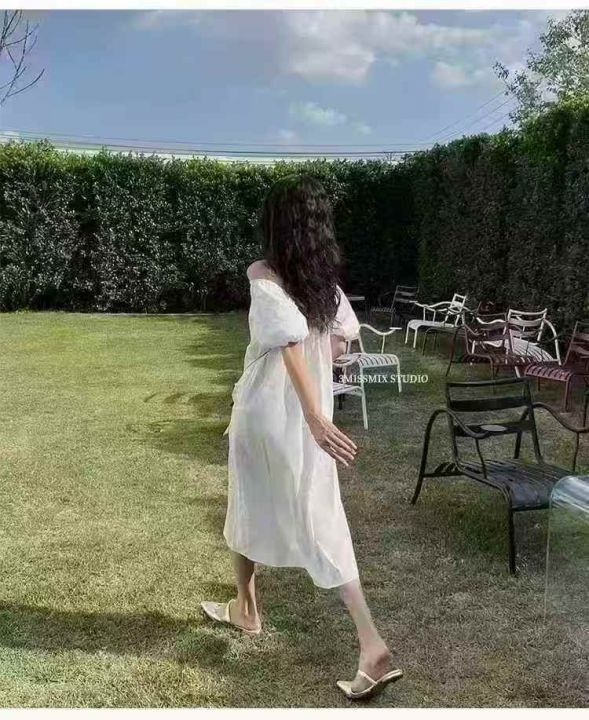 300件左右天猫在售冷淡风白色仙女裙子茶歇裙一字领露...