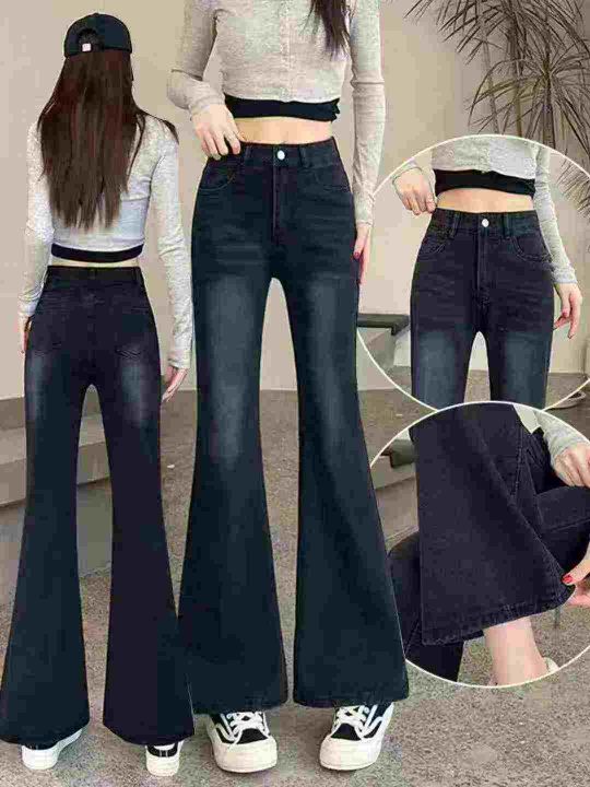 ☕️高腰微喇牛仔裤女春秋新款小个子显瘦拖地马蹄裤子...