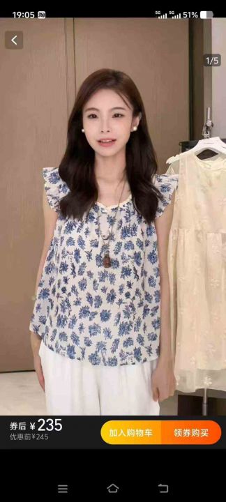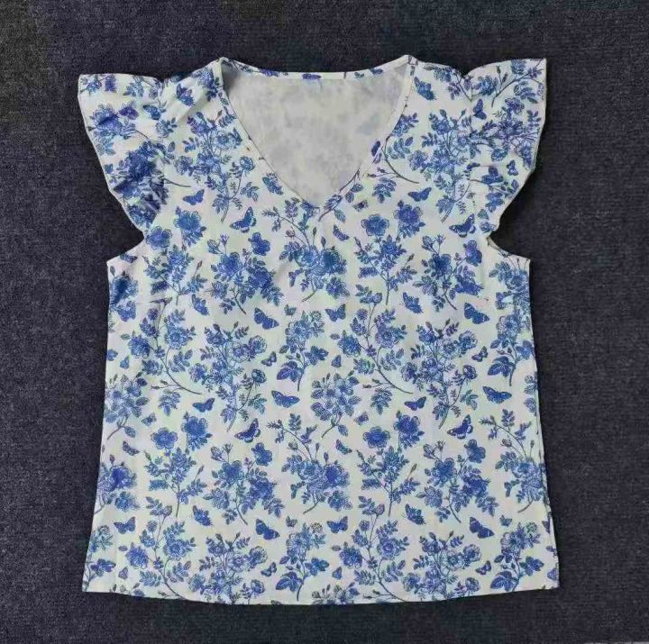 3.8元,女装夏季法式没计感飞飞袖碎花上衣,382件,S-2XL,独立包装,全清3.8元,分货+0.5