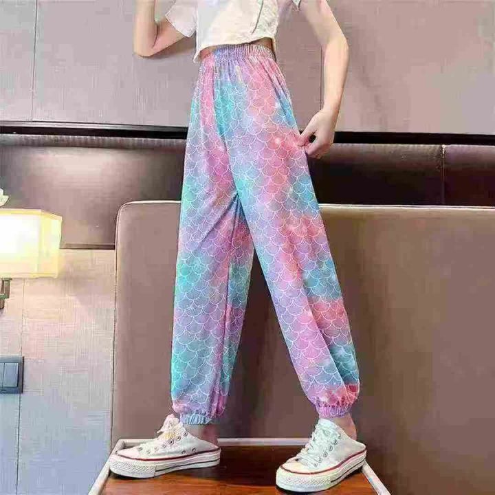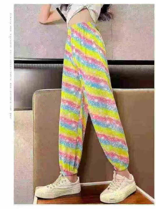 童装冰丝裤,女童夏季速干休闲束脚彩色冰丝裤,松紧腰...