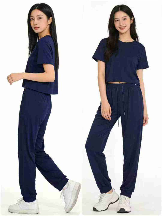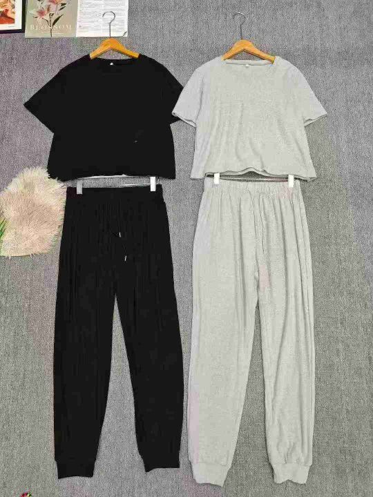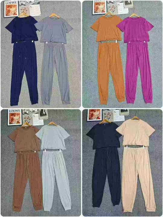 电商仓回收4201套跨境武动休闲纯色女士短袖长裤套装,码数S-2XL。面料柔软舒适有弹性,质量质感都很好,都有包装,分货➕1
