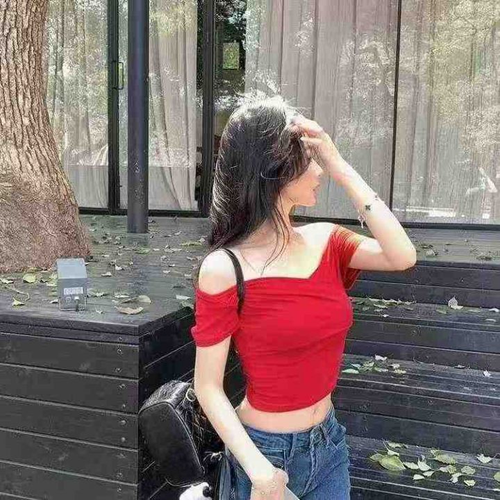 [發]纯欲辣妹性感交叉v领短袖120件左右网红新款,独立...