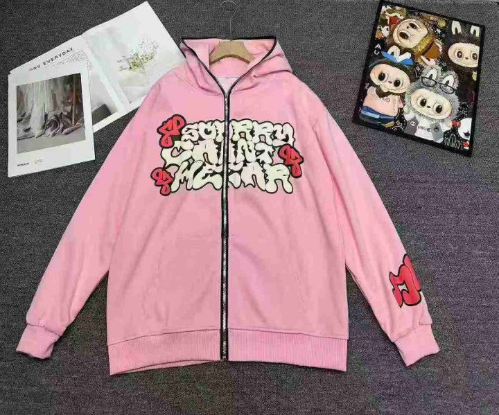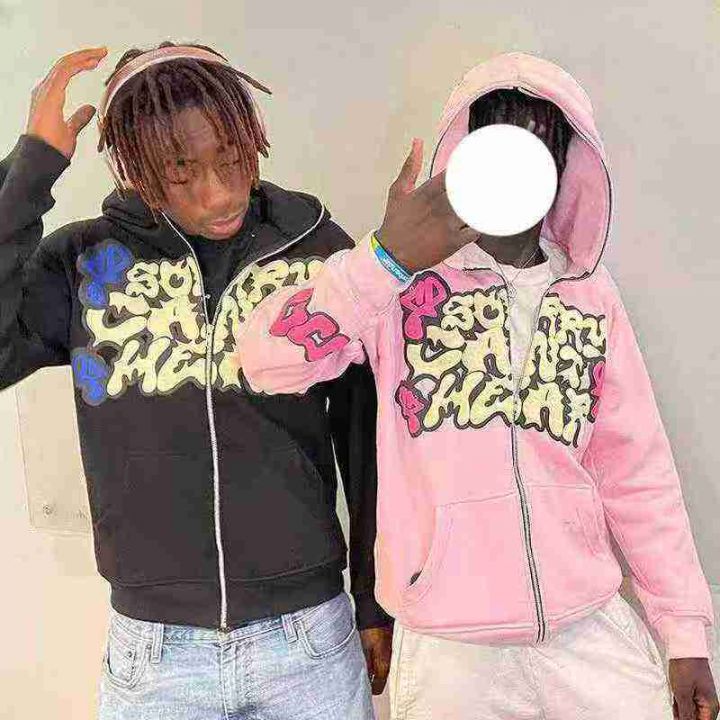 天猫在售款159件高品质男女同款纯棉华棉拉链连帽卫衣,发泡印花和刺绣工艺,图片两款图片色,码数S-XL,独立包装