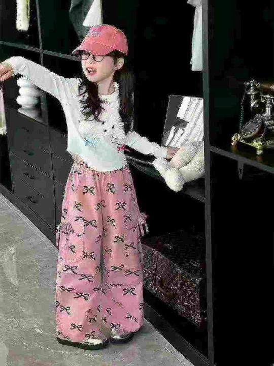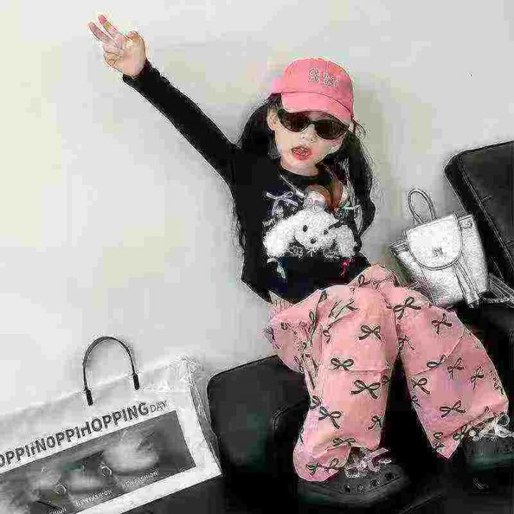 天猫在售款1700件左右高品质春秋款中大童洋气潮流蝴蝶结休闲工装裤,码数100-160,单款单色,独立包装