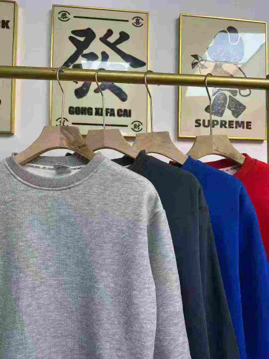 天猫在售款2000件左右高品质秋冬加绒加厚男女同款中大童纯色圆领华棉卫衣,码数120-170,单款四色(红色少),内里加超柔BB绒,后领包边过肩,十件一包装