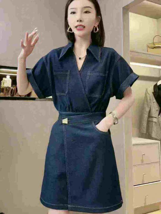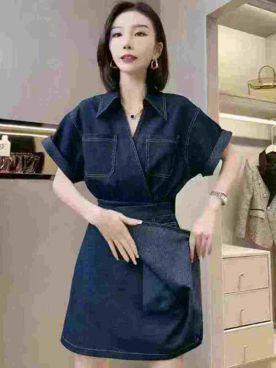 14.8清524件女靓妹辣妹小七法式水洗棉牛仔连衣裙女2025夏季新款气质通勤设计感收腰短袖裙子潮。货品嘎嘎的新 统一面料 码数M-4XL 独立包装 分货加1