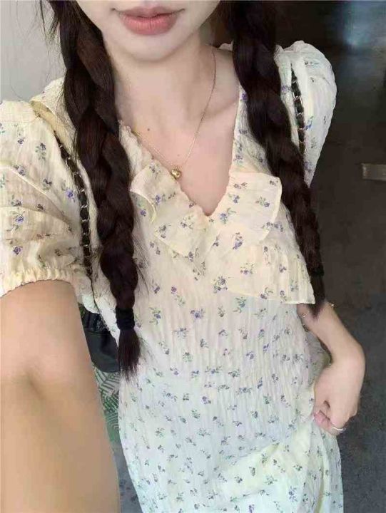 上新全清:16.8一件韩系温柔超仙黄色V领碎花连衣裙,[爱心]45件左右,款号#...