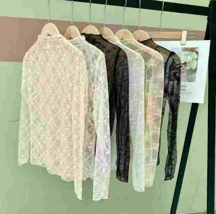 1300件半高领木耳边蕾丝打底衫女玫瑰花法式网纱内搭别...