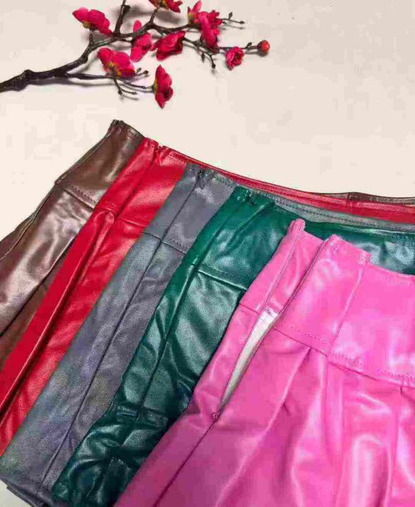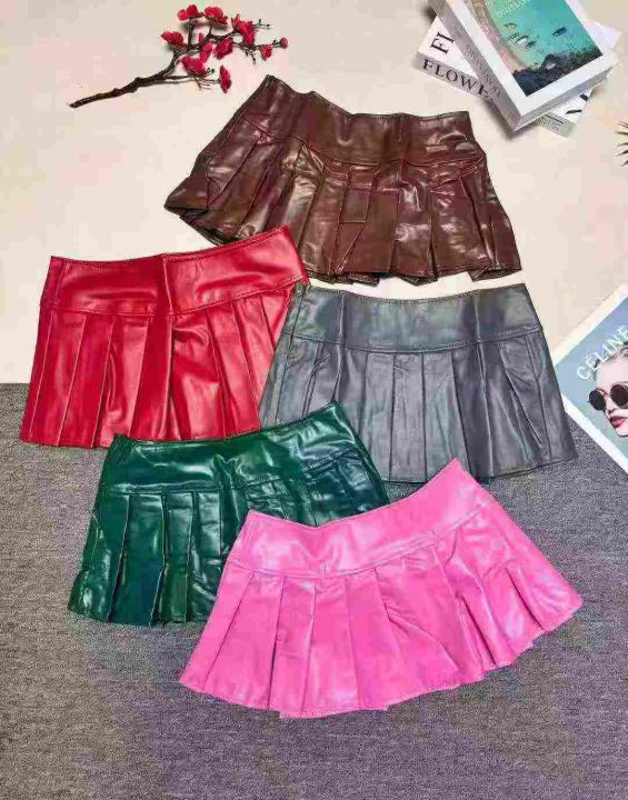 欧美时尚洋气辣妹PU百褶短皮裙,整款五色,数量:230条左右,码数:S-2XL,品质好,拉链式独立包装。