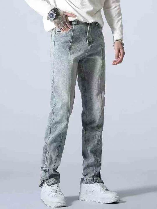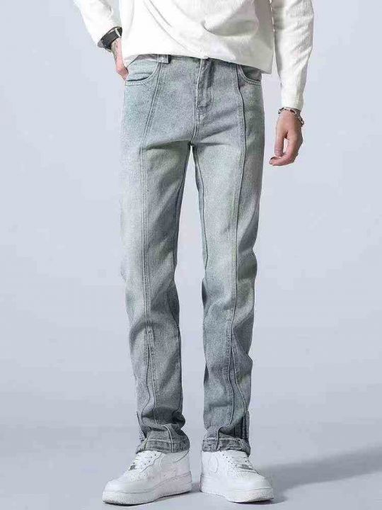 新款牛仔裤男浅色美式直筒宽松高端长裤休闲男裤高级裤...