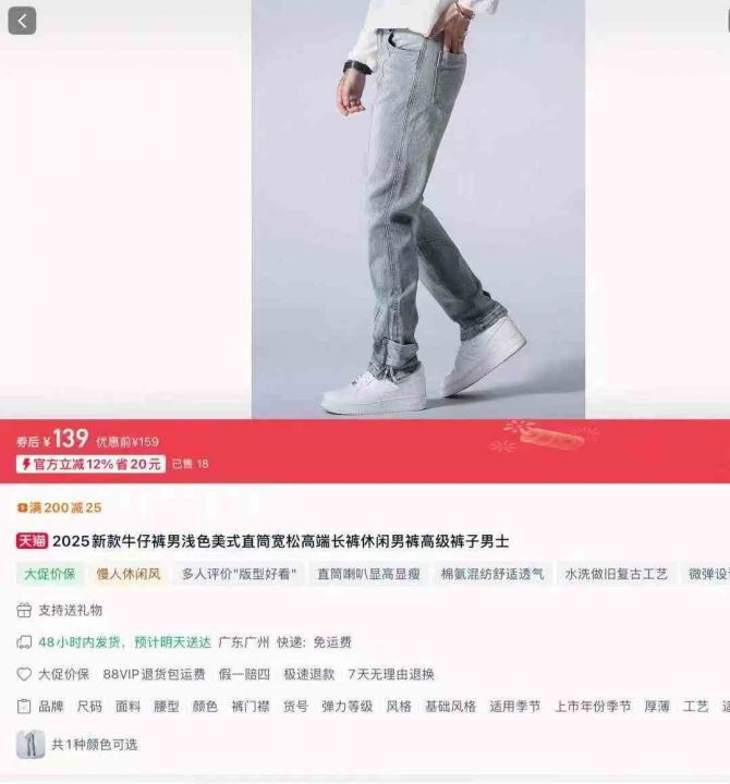 新款牛仔裤男浅色美式直筒宽松高端长裤休闲男裤高级裤子男255件,独立包装带吊牌,尺码S~5XL,全清福利价9.8元,分货➕1元