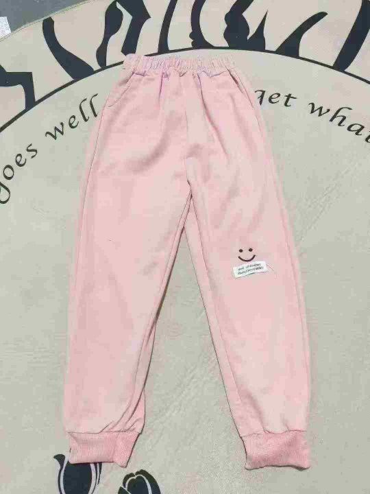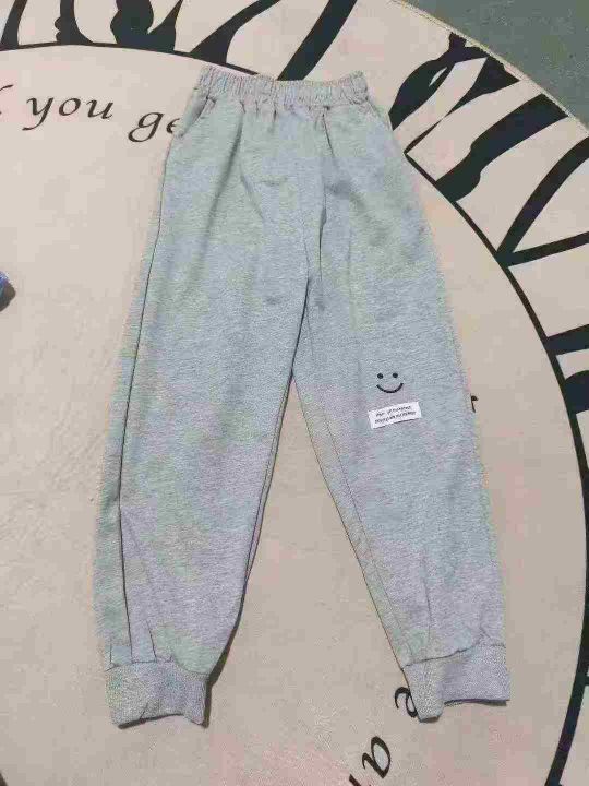 中小童时尚百搭洋气宽松笑脸logo多色卫裤 数量600件左右 码数80--130 整款三个颜色 独立包装 货品干净整洁