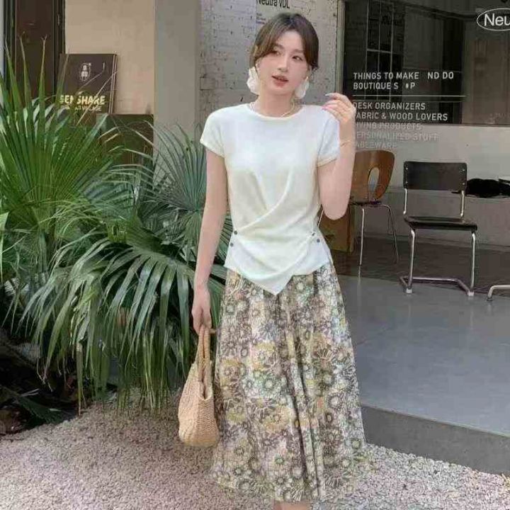 清12.8分货➕1时尚休闲套装女新款夏装穿搭一整套洋气短袖T恤半身裙两件套,...