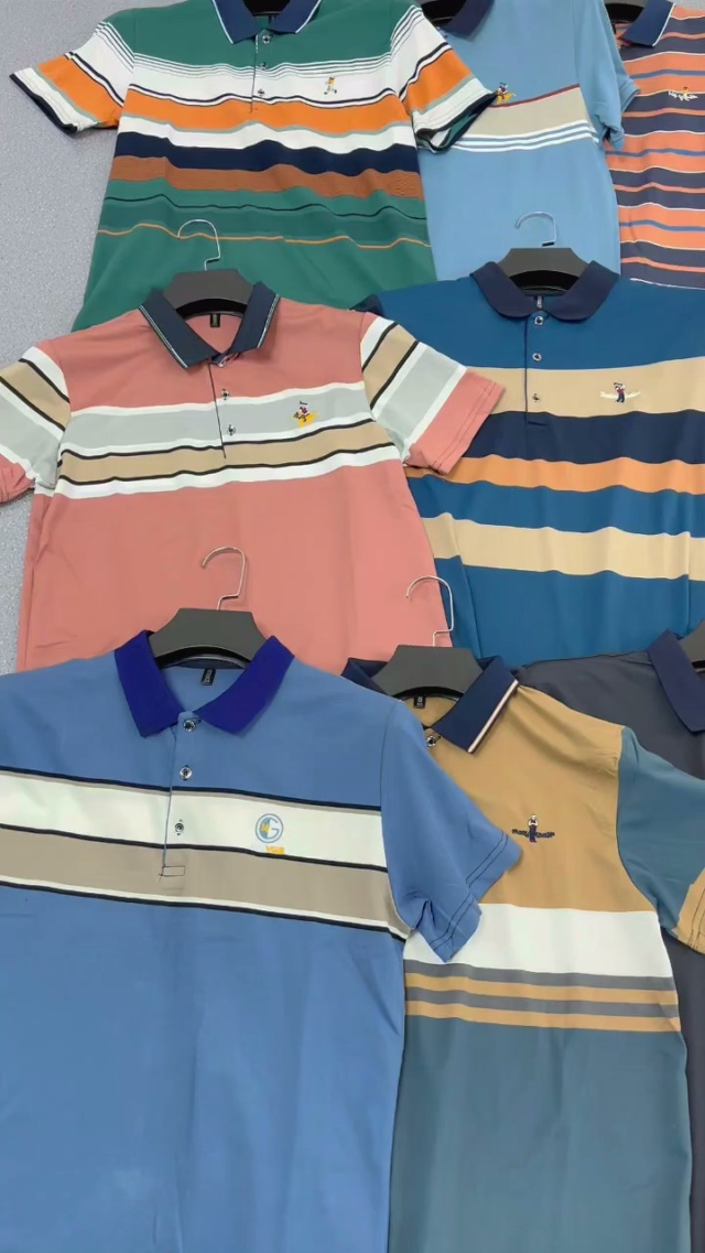 高品质男装大条纹刺绣翻领短袖T恤☕️4800件全清14.8元,分货16元,码数50-...