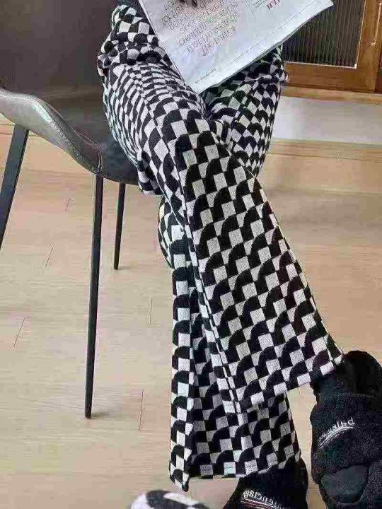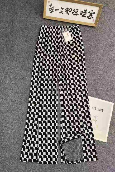 棋盘格子喇叭裤529件8.5,面料微弹,松紧腰,裤脚开叉...