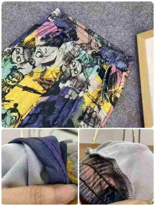 扎染哪吒图印阔腿裤1075件6.5,面料舒适高弹力,松紧...