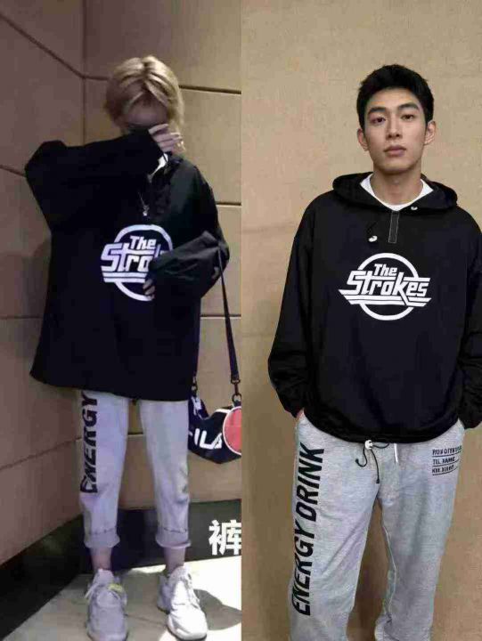 [月亮]:休闲运动情侣连帽卫衣裤子套装