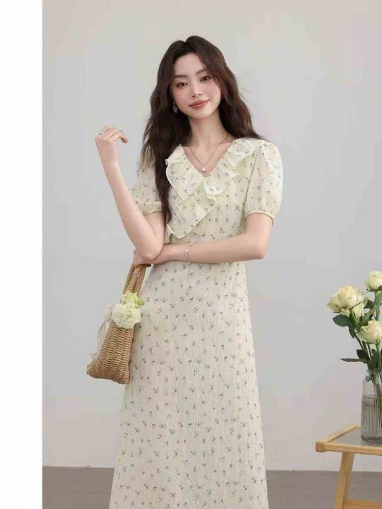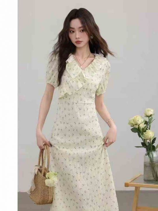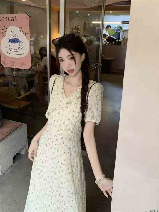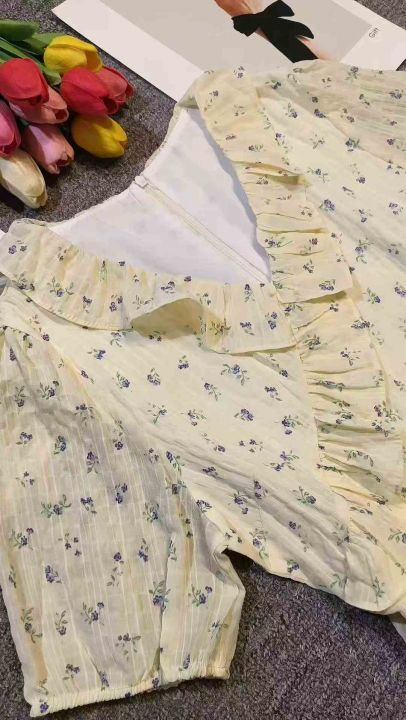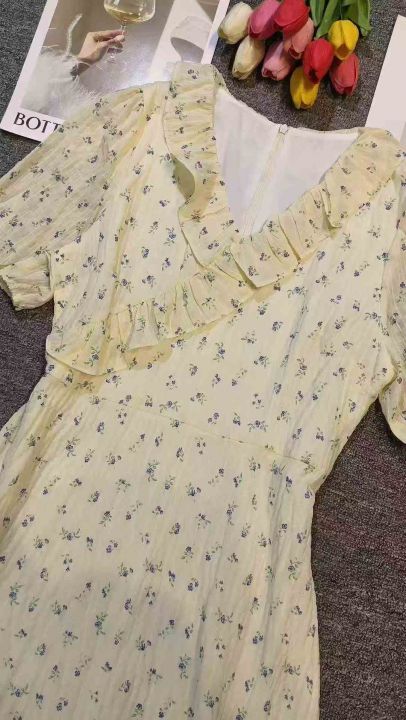 上新全清:16.8一件韩系温柔超仙黄色V领碎花连衣裙,[...