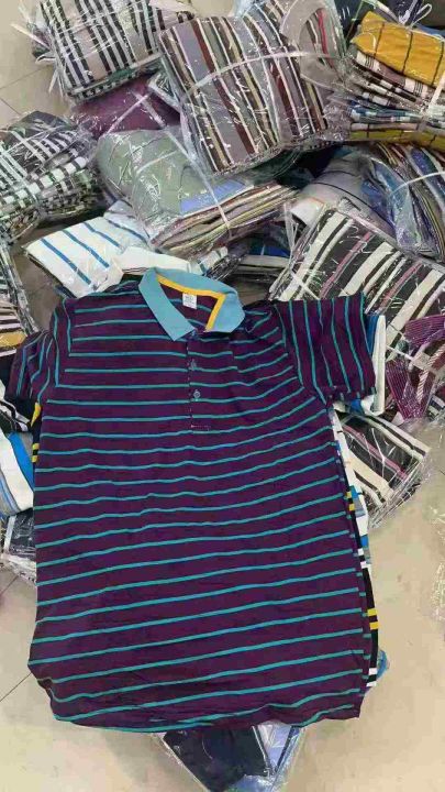 便宜装柜男装翻领polo短袖T恤,都是条纹彩色,☕️30000件清货6.8元,分货100件起批7.8元,码数50 52 54 独立包装 都是新货亏本处理!