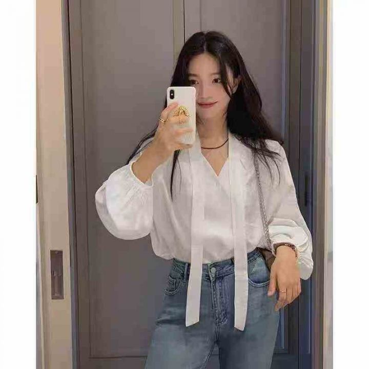 750件左右法式高级感洋气气质百搭长袖V领别致不规则绑带泡泡袖衬衫上衣,做工品质毋庸置疑,尺码S-XL,货品干净,独立包装!福利秒杀价5.8 分货6.5