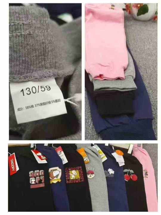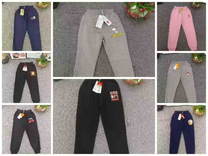 品牌中大童纯棉束脚长裤,数量1000件左右,尺码110--160,共五个品牌(史努比、巴拉巴拉、迪士尼、森马、baby) 可分品牌出,logo很多,独立包装带吊牌,货品干净整洁