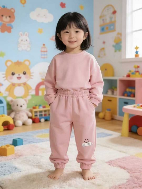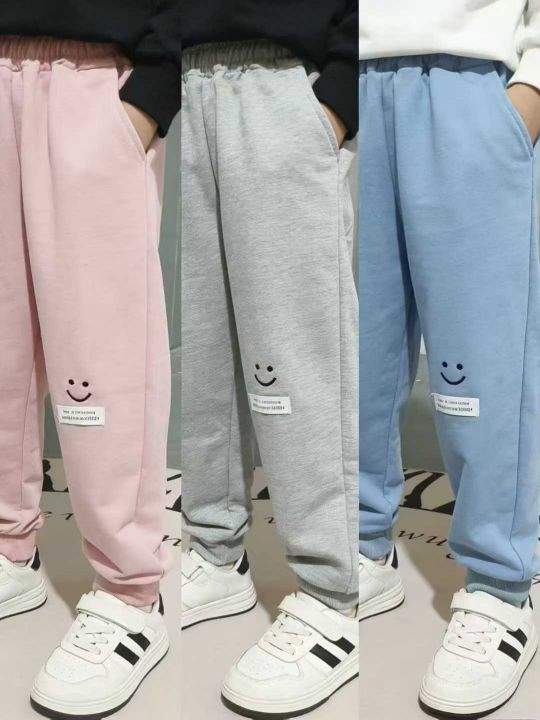 中小童时尚百搭洋气宽松笑脸logo多色卫裤 数量600件左右 码数80--130 整款三个颜色 独立包装 货品干净整洁