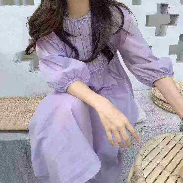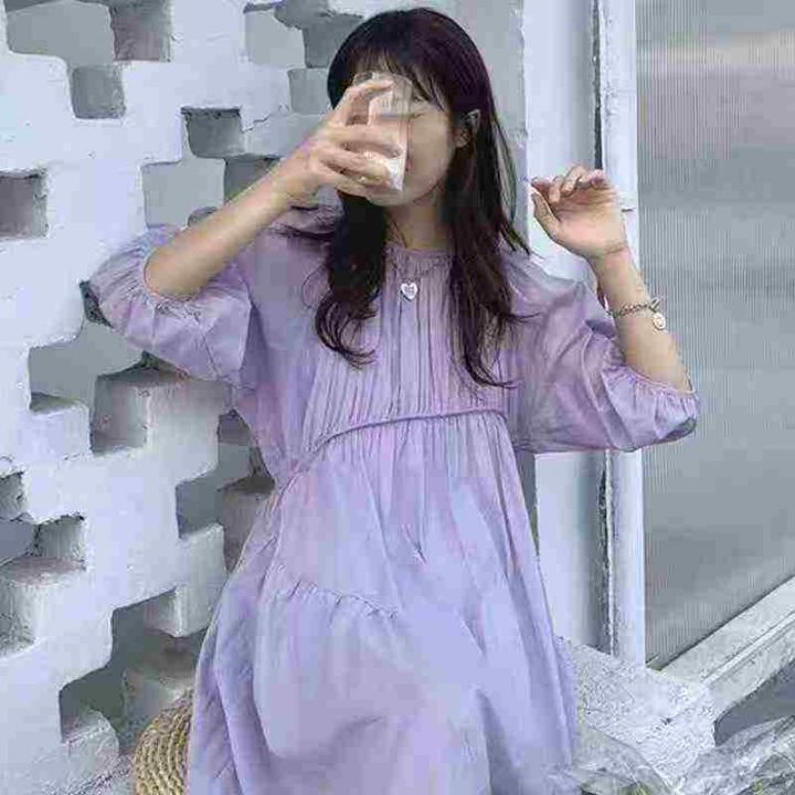 韩版宽松大版型不规则设计感温柔显白泡泡袖吊带两件套长款连衣裙,[爱心]360套左右,S胸围114,码数S-XL,穿80-160斤,万佳档口货,原包装️无瑕疵,[666]实体店品质,分货加一
