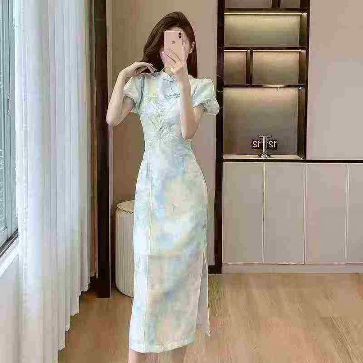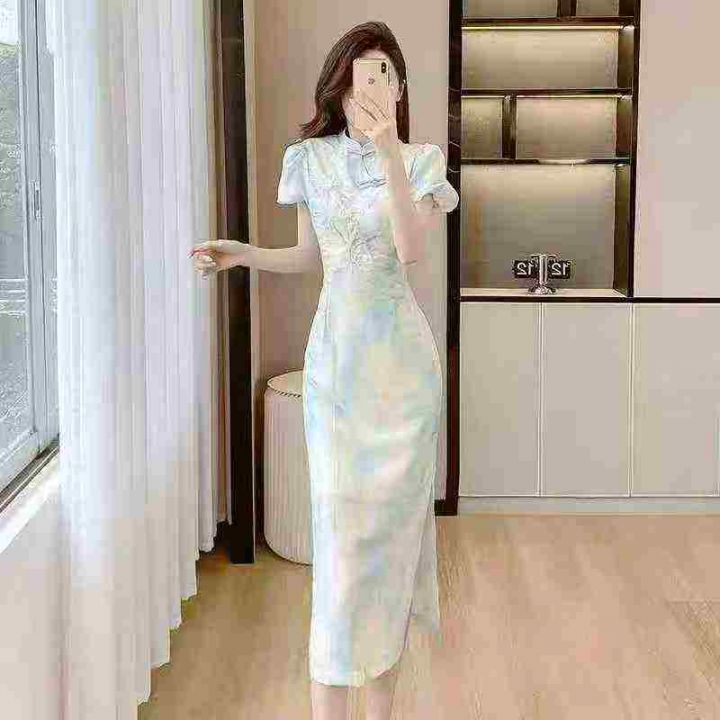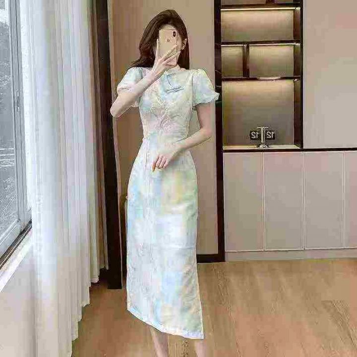 新中式国风刺绣收腰设计感盘扣连衣裙,[爱心]65件左右,码数S-L,穿80-130斤,万佳档口货,原包装️无瑕疵,[666]实体店品质