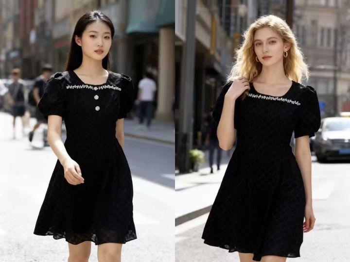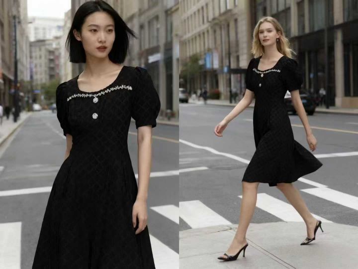 法式菱格镶钻方领高腰修身高级时尚连衣裙 数量112件 码数M--4XL 整款两个色 独立包装带吊牌 货品整洁质佳