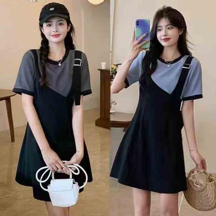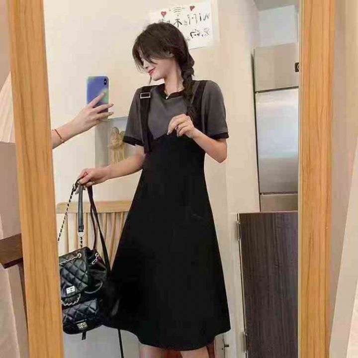 韩版设计感拼接撞色假两件连衣裙 数量89件左右 码数L--4XL 独立包装带吊牌 货品干净整洁