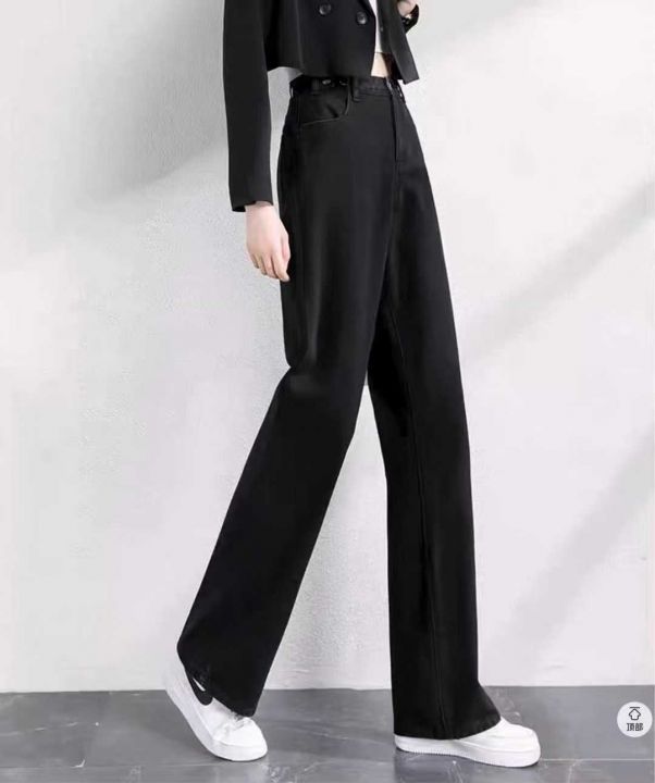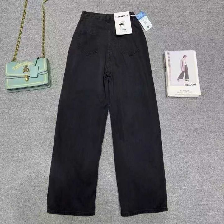 秋冬复古加绒加厚宽松显瘦牛仔裤女大码胖mm高腰直筒翻边阔腿长裤180件,独...