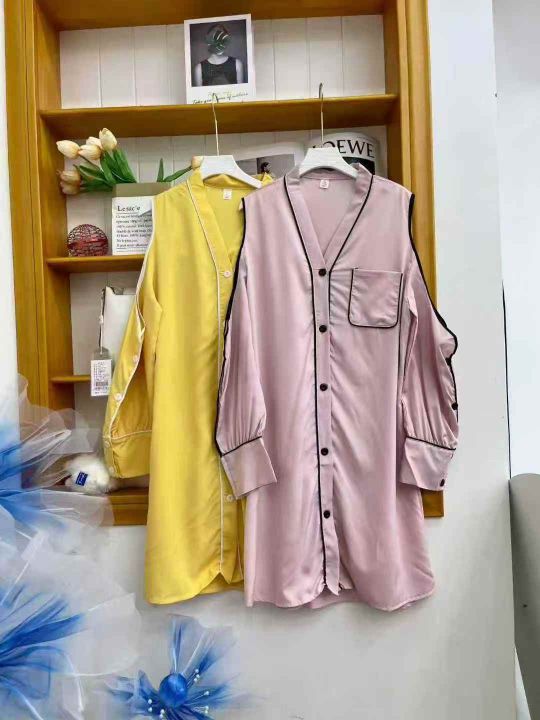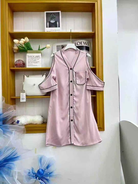 ① 网红冰丝性感露肩韩版宽松家居睡裙!独立包装,整款五色,有部分长袖款,码数M-2XL,数量300件左右,全清6.8元